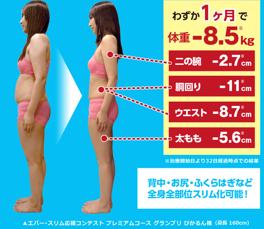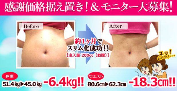 脂肪吸引より安心・安全・効果も絶大!脂肪吸引で実現できなかった、理想のプロポーションが手に入る!モニターなら、お得に痩せられる!